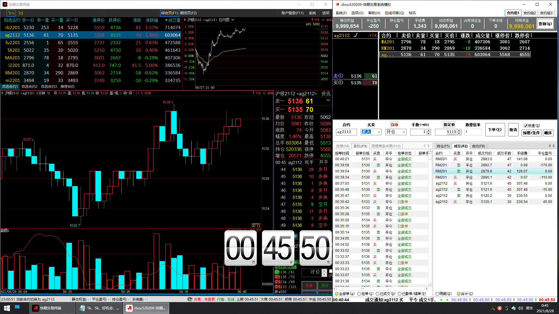 好久没接触期货了,一开始非常不适应,成交的单子看不过来,模拟盘看了一晚上才渐渐适应,止损和可转债相差比较大,看来得做段时间的0-1训练了,还有快期2的模拟账号是可以挂单排队成交的。